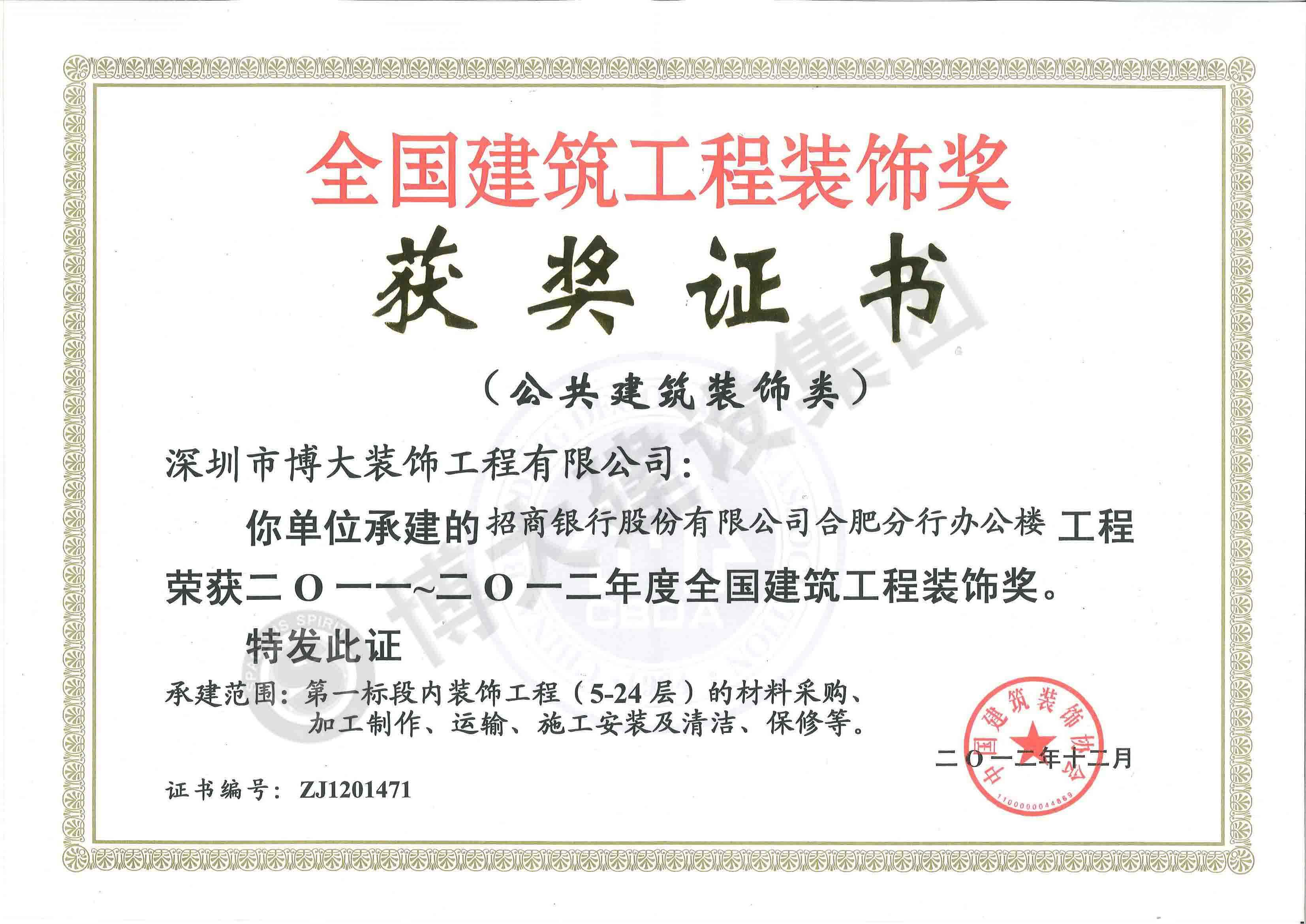 中國建筑工程裝飾獎(招商銀行合肥分行-裝飾)
